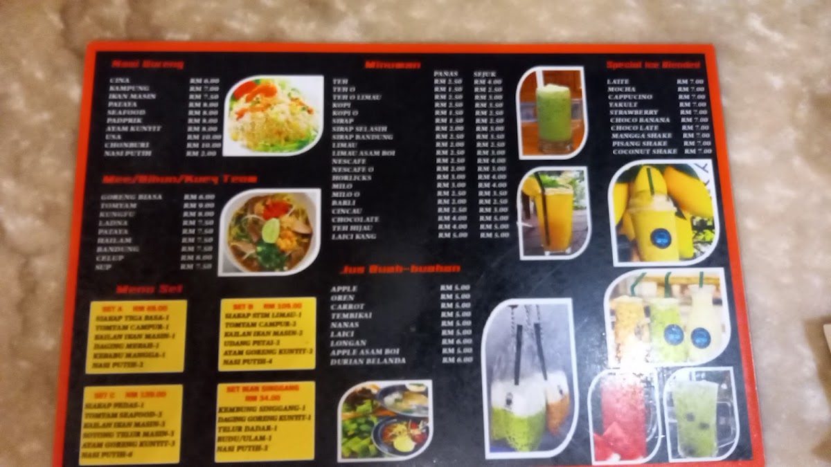 The menu at Restoran Chunburi Seafood primarily features a variety of seafood dishes, alongside a selection of other Malay and regional specialties. Diners can expect offerings such as steamed fish, fried chicken, and a range of rice and noodle dishes that cater to both casual meals and group dining.